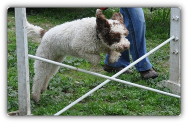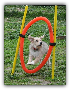 Je vous propose une initiation à cette discipline sur des obstacles adaptés à tous les chiens, de tous âges. N’ayant pas d’objectif de compétition, la hauteur de la passerelle a été réduite afin de limiter le risque de chute. La pente de la palissade a été adoucie pour protéger les articulations fragiles .